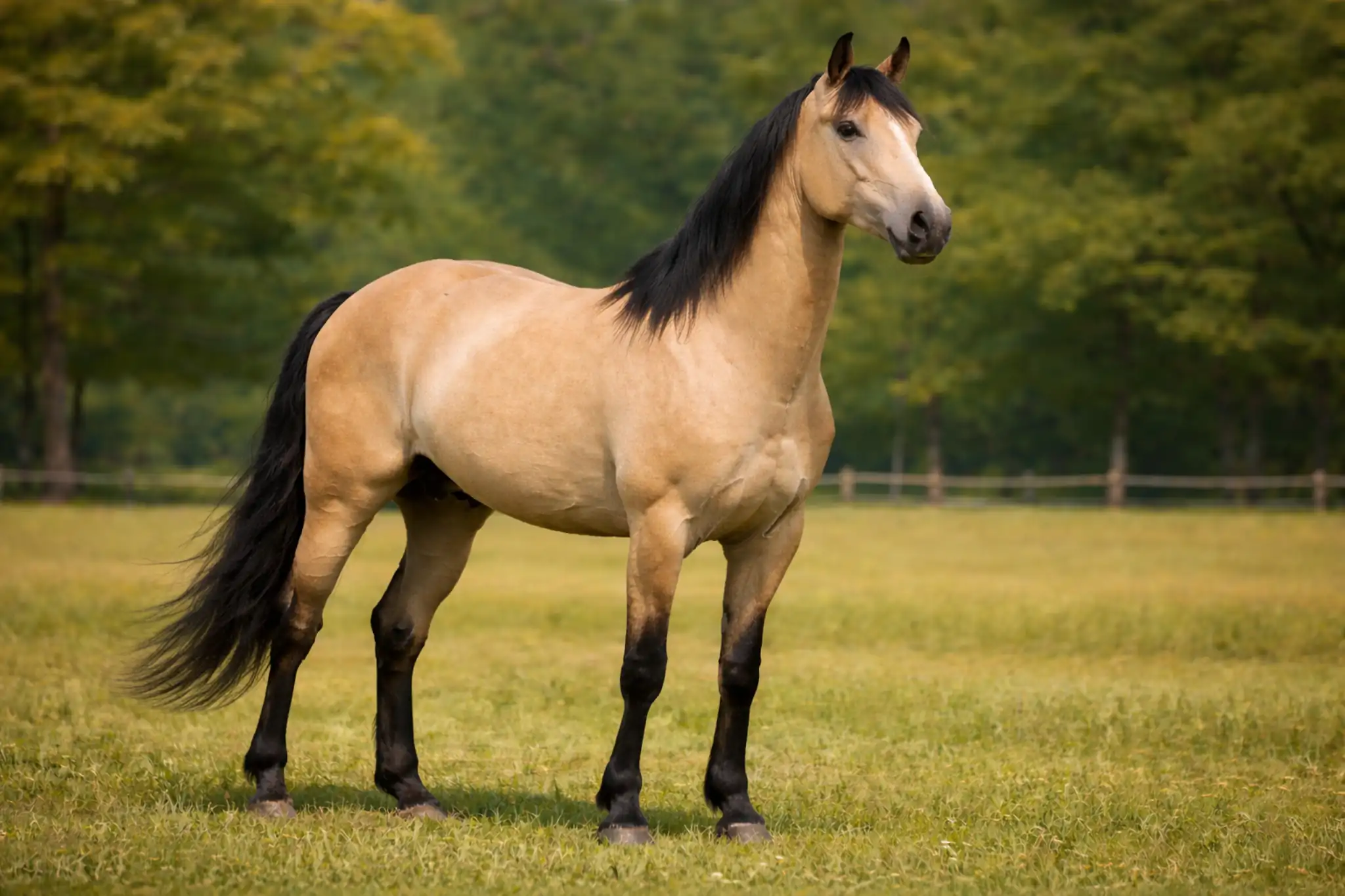 - koń bułany ma tułów wyraźnie rozjaśniony, często w odcieniach złota lub piasku,