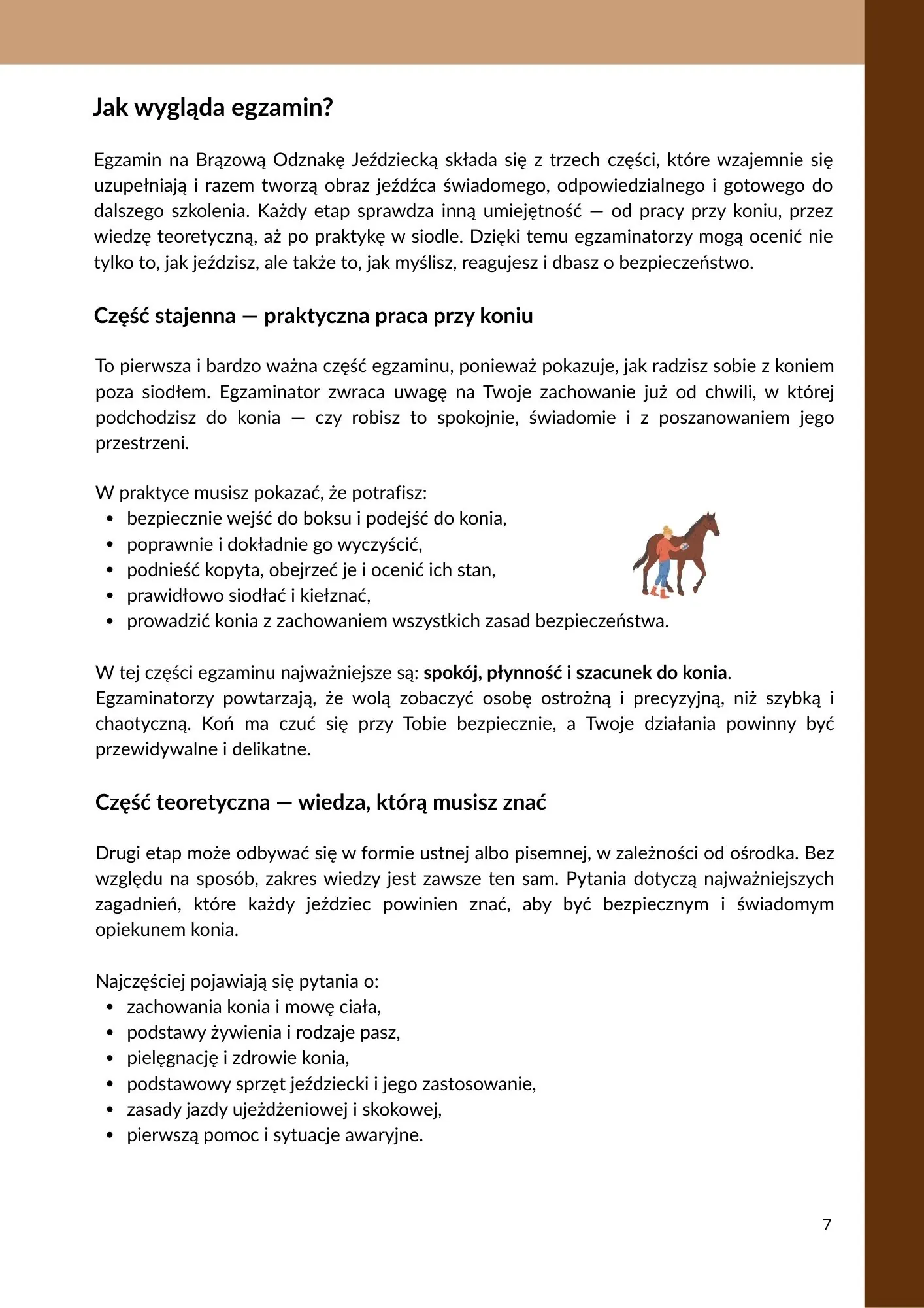 – szczegółowe omówienie programu egzaminu Brązowej Odznaki Jeździeckiej,